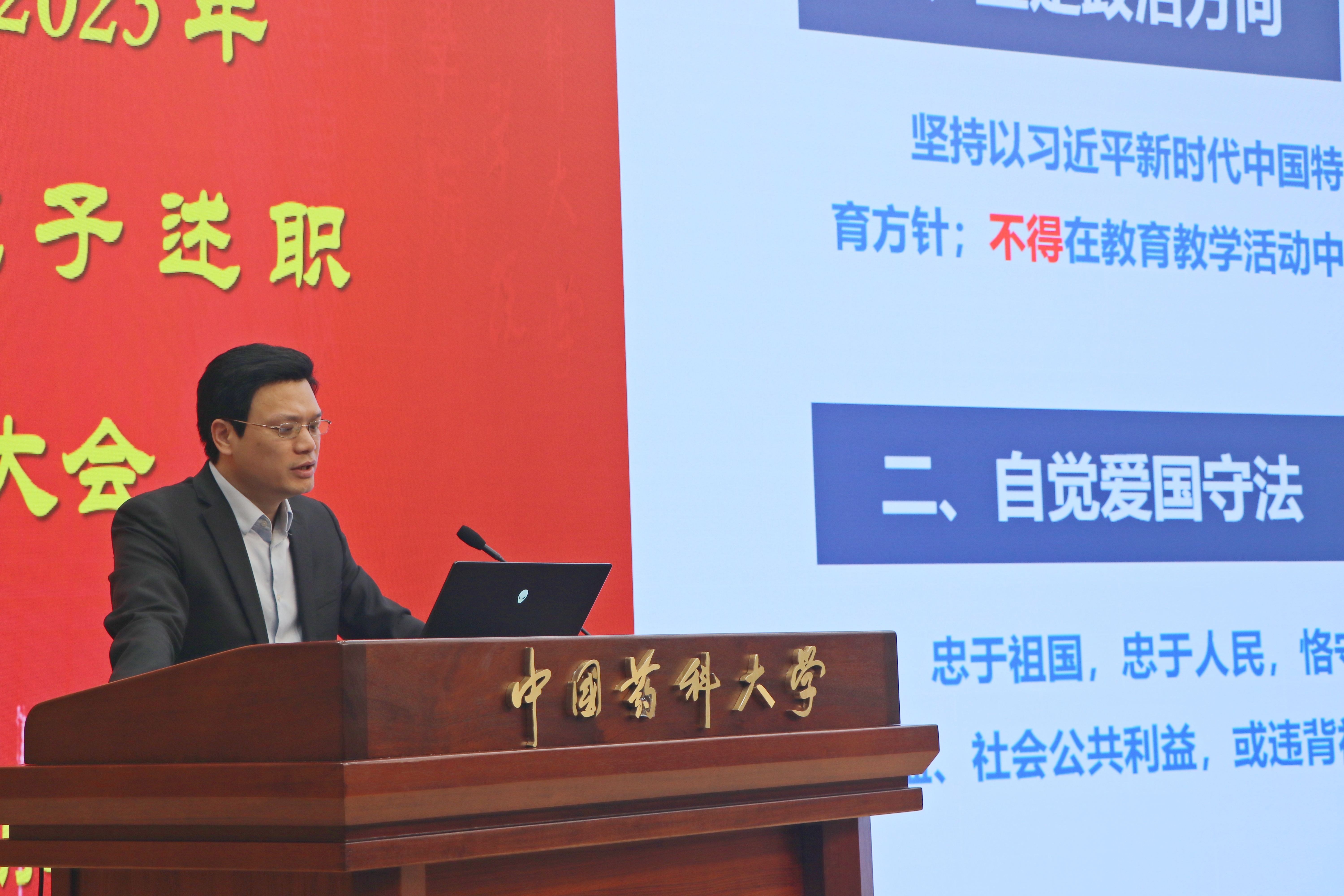 药公司党委书记张仕英以《以党建之帜引领公司之治》为题进行述职,从本年度抓基层党建工作情况、履行党建第一责任人职责情况、问题整改情况及现存不足、下一步工作思路及举措等方面,介绍了公司党委2023年度抓基层党建的总体情况。副经理吴照球(主持行政工作)从团队队伍新格局、团队建设新布局、科研能力新提升、人才培养新举措和员工工作见成效五方面,汇报了公司行政一年来的工作情况。公司领导班子其他成员分别从德、能、勤、绩、廉等五个方面进行个人述职。随后,全体教职工对领导班子成员和公司职能部门进行测评。
