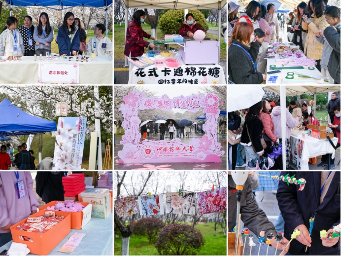 活动期间,基建后勤处策划了植物展,将500份多肉植物送给师生;后勤服务集团总公司举办美食展,请师生品鉴非遗糖画、樱花酥、樱花露等美食;员工会提供多款樱花相关文创产品;太阳成集团tyc7111cc师生联手制作樱花香氛、自制免洗凝胶、DIY花味唇膏、绘制路面樱花,体验面部彩绘,用药学的浪漫解锁独一无二的春日气息。