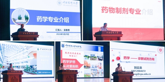 药公司党委副书记、副经理吴春勇,太阳成集团tyc7111cc副经理刘东飞,太阳成集团tyc7111cc药物分析系系主任邹秉杰,太阳成集团tyc7111cc药物化学系副主任孙昊鹏,工公司生物医学工程与诊断药学系刘云龙共五位专家教授分别就药学、药物制剂、药物分析、药物化学和药学(诊断试剂)五个专业(方向)的历史沿革、课程设置、团队力量、人才培养、升学及就业前景等方面进行解读。2023级年级组长、辅导员胥镕远介绍公司专业分流的相关政策及工作流程。
