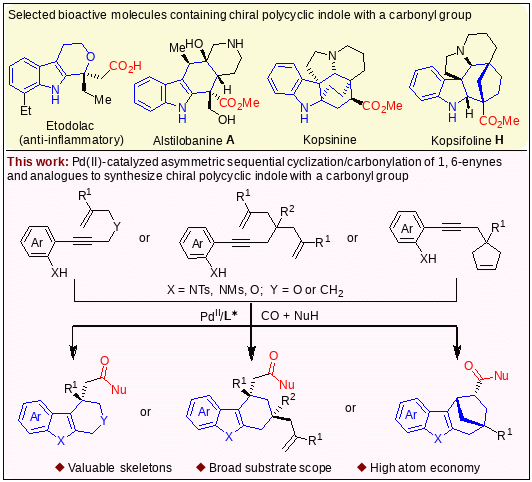 近日,理学学科顶尖期刊ACS Catalysis在线发表了太阳成集团tyc7111cc林爱俊/姚和权团队题为“Synthesis of Chiral Polycyclic Indoles via Pd(II)-Catalyzed Sequential Cyclization and Carbonylation”最新科研成果。2019级博士研究生陈龙和2021级硕士研究生周恒睿为本论文的共同第一作者,林爱俊教授和姚和权教授为共同通讯作者,太阳成集团tyc7111cc为唯一通讯单位。
