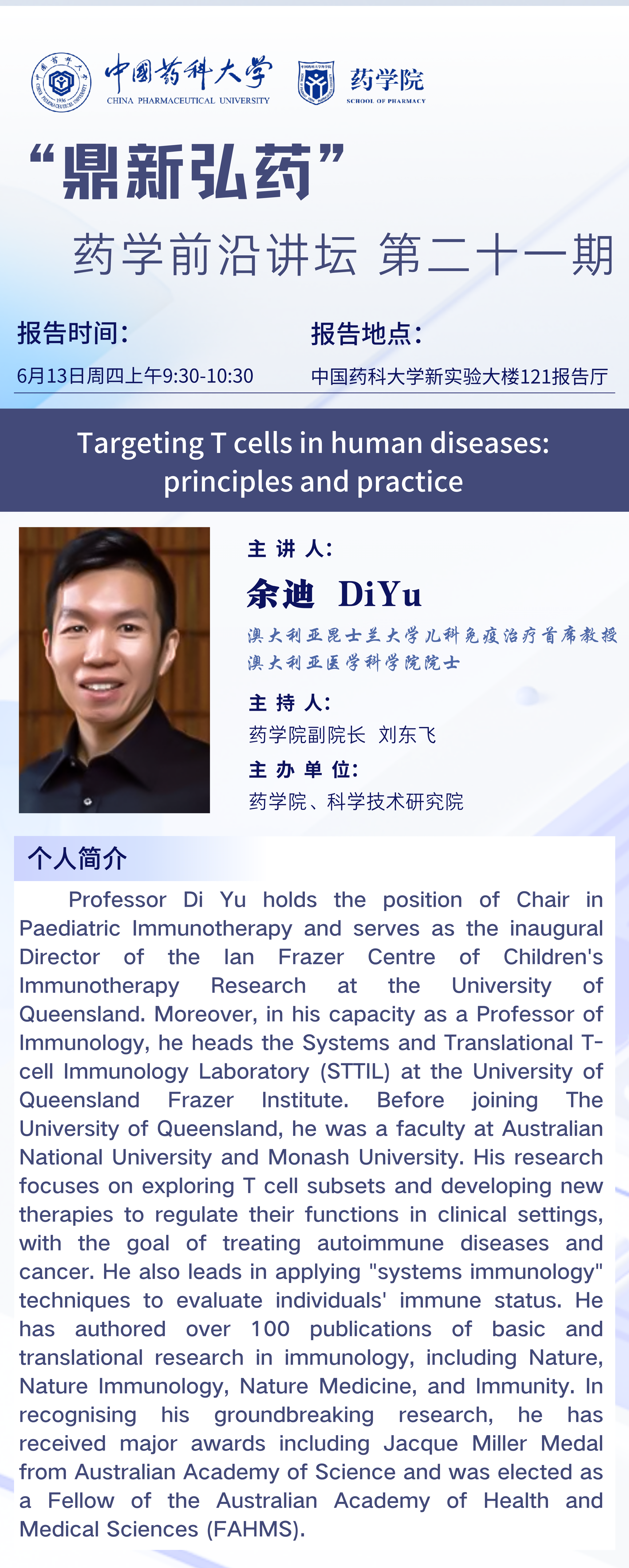 “鼎新弘药”药学前沿讲坛第二十一期通知
