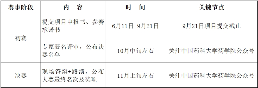 2.报名方式:各参赛队伍下载并填写“附件1:2024年江苏省研究生医药科研创新实践大赛项目申报书”、“附件2:2024年江苏省研究生医药科研创新实践大赛参赛承诺书”以及相关支撑材料,于2024年9月21日24:00前发送至大赛邮箱jsyycxsj2024@126.com,邮件主题“赛道名称-项目主题-公司-负责人姓名”。(附件1、附件2下载链接见文末)