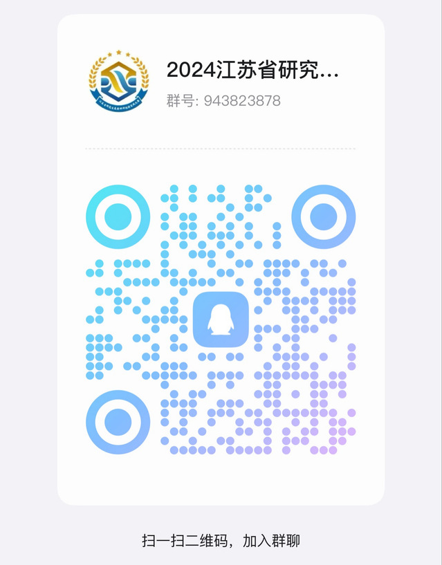 大赛QQ群:2024江苏省研究生医药科研创新实践大赛官方联络群(群号:943823878),后续相关通知大赛QQ群内将同步发布。