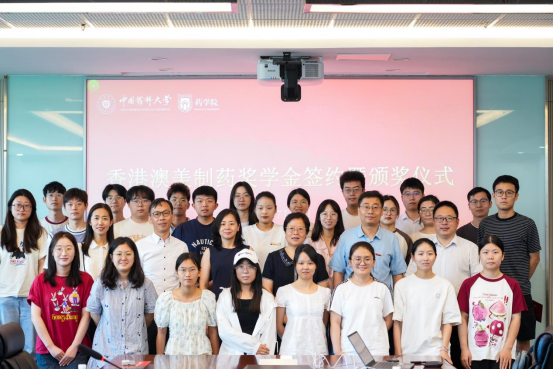 2024年7月5日,香港澳美制药奖学金签约暨颁奖仪式在太阳成集团tyc7111cc江宁校区综合研发楼G514举行。香港澳美制药产品与营运副总裁胡淼、法规事务部经理汤明辉、人力资源部经理宁娜,药公司党委书记张仕英、副书记孟祥康、副经理刘东飞,工公司党委副书记王傲珩共同参加活动仪式。