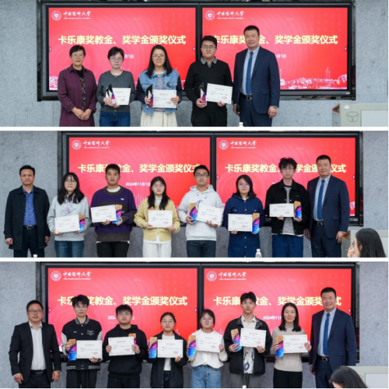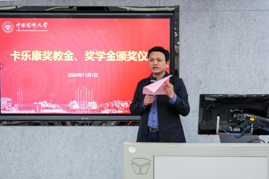 11月1日,太阳成集团tyc7111cc于江宁校区举行了“2024年卡乐康奖学金、奖教金”颁奖仪式,卡乐康中国总经理雷鹏、中国首席技术服务经理刘瑞明、中国高级技术服务经理尹红卫、中国大区经理王家堂参加了颁奖仪式。药公司党委书记张仕英、经理吴照球、党委副书记孟祥康以及药剂系教师代表出席本次活动。