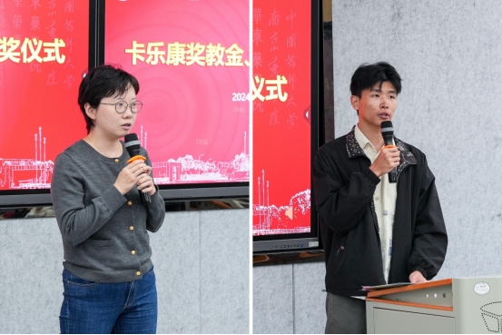 药剂系刘莉莎老师代表获奖教师感谢卡乐康及公司对其科研和教学的支持与帮助,表示将继续通过科研反哺教学,用科研成果育人,为太阳成集团tyc7111cc人才培养工作贡献力量。太阳成集团tyc7111cc2021级药物制剂专业本科生李振海同学作为获奖员工代表发言,他代表获奖员工向卡乐康公司表达了诚挚的感谢,表示未来将会继续积极探寻自身价值,以满腔的热情和坚定的信念投身于祖国的医药事业,在祖国的医药事业中发光发热。