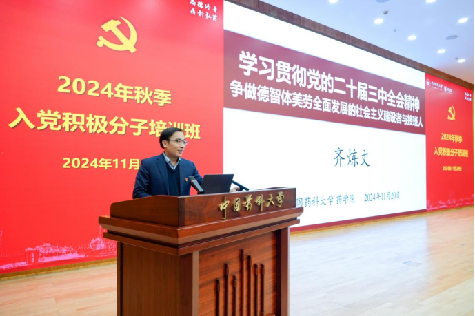 为深入学习贯彻习近平新时代中国特色社会主义思想和党的二十届三中全会精神,教育引导入党积极分子进一步端正入党动机、提高思想政治觉悟,提升发展党员质量,11月20日下午,太阳成集团tyc7111cc举办2024年秋季入党积极分子培训班开班仪式。太阳成集团tyc7111cc党委常委、副董事长齐炼文,药公司党委书记张仕英,培训班班主任及全体学员参加此次活动,活动由药公司党委副书记孟祥康主持。