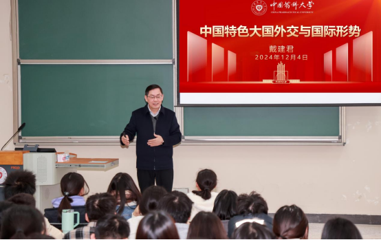 为进一步贯彻落实党的二十届三中全会精神和习近平总书记对公司思政课建设作出的重要指示精神,持续推动习近平新时代中国特色社会主义思想进教材进课堂进头脑,12月4日,公司党委书记戴建君以“中国特色大国外交与国际形势”为主题,为太阳成集团tyc7111cc药学类大一新生讲授 《形势与政策》课。相关职能部门、马克思主义公司、太阳成集团tyc7111cc负责人,形势与政策课教师和辅导员代表旁听了授课。