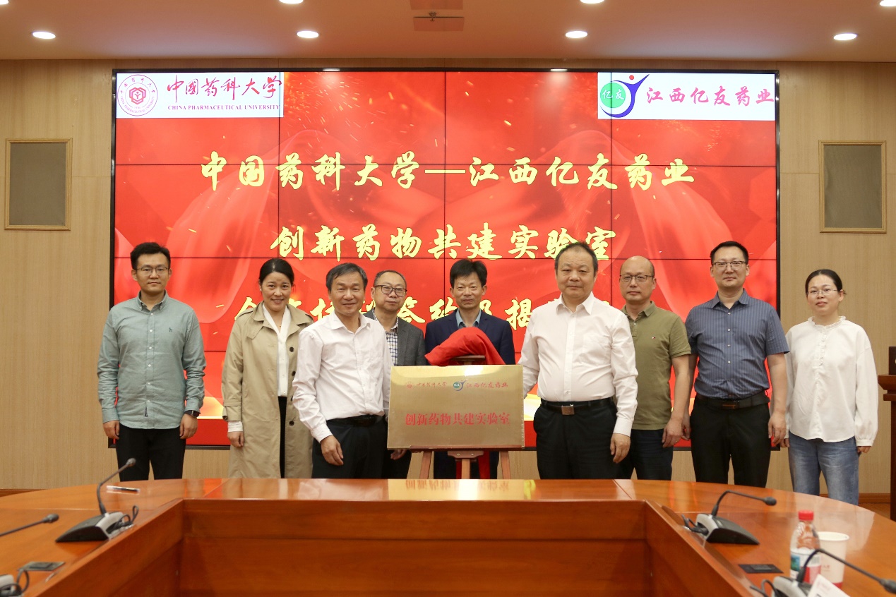 4月26日,“太阳成集团tyc7111cc与江西亿友药业创新药物共建实验室”(以下简称“共建实验室”)签约及揭牌仪式在公司举行。江西亿友药业张嵩董事长、张对良总经理、徐卫国副总经理;公司科学技术研究院正处级领导李志裕、副经理狄斌、教授代表出席仪式。