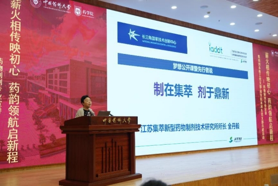 讲座中,全丹毅博士以国际化视角,带领同学们回顾了国内外药物制剂行业的发展脉络,介绍了当前药物制剂领域的新热点、新动态,并围绕自身“药剂生涯”,回忆了求学、求职、创业过程中的心路历程。她对药物制剂学科、新药研发的深刻理解和对母校的情谊绵长让在场同学深受触动。