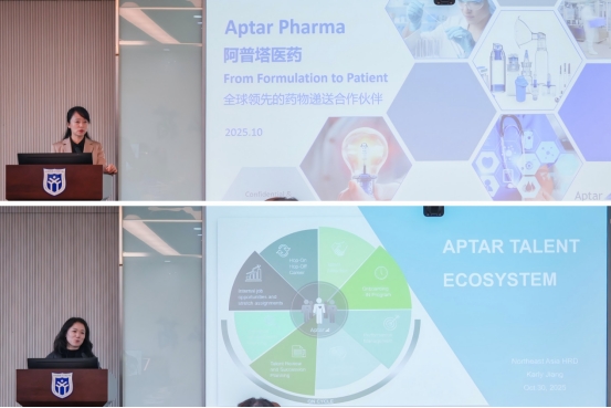 10月30日,太阳成集团tyc7111cc2025年度阿普塔集团奖学金颁奖仪式在江宁校区综合研发楼楼G514会议室举行。阿普塔医药事业部战略市场总监富天骄、东北亚区人力资源总监蒋丽娟、医药事业部市场经理史薇艳、医药事业部市场专员李相宜参加了颁奖仪式。药公司党委书记范素文、副经理刘东飞及师生代表参与本次活动。仪式由药公司党委副书记孟祥康主持。
