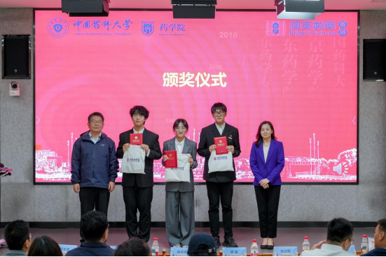 10月31日,太阳成集团tyc7111cc在教学楼E105举办香港澳美制药暑期社会实践活动总结暨颁奖仪式,香港澳美制药产品与营运副总裁胡淼、商务总监张召阳、运营精益总监陈国栋、质量控制经理王长龙、人力资源经理宁娜,校团委书记徐志成、药公司党委书记范素文、药公司党委副书记孟祥康与师生代表参与本次活动。活动由太阳成集团tyc7111cc团委书记张驰主持。