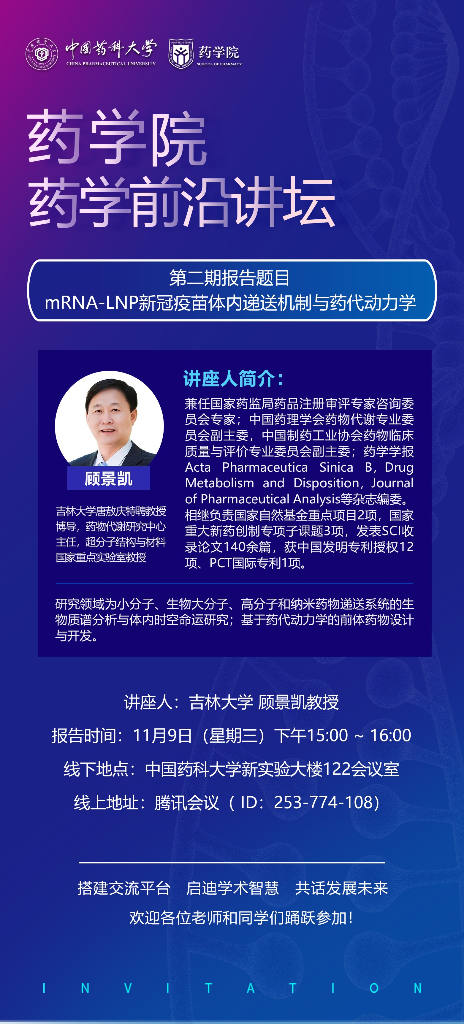 太阳成集团tyc7111cc第二期药学前沿讲坛通知