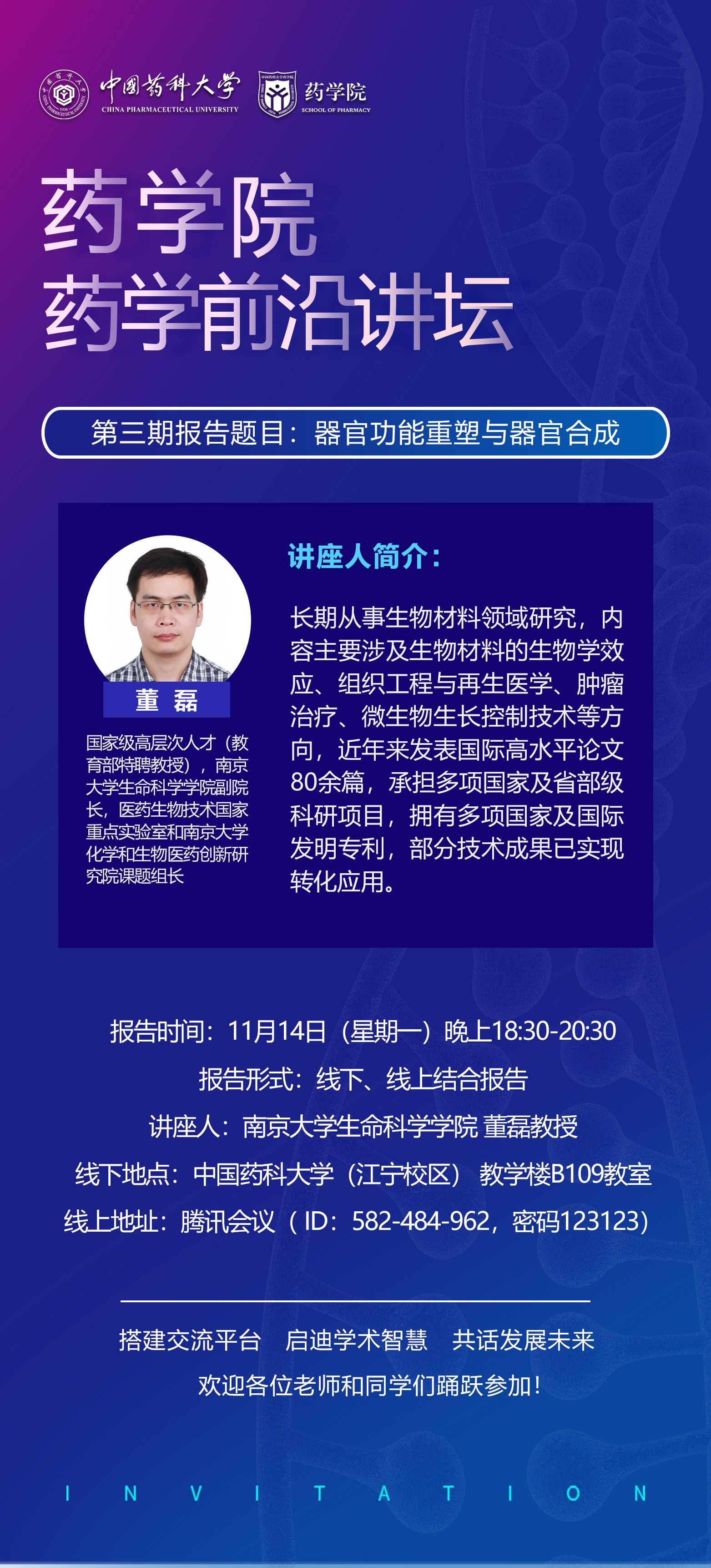 太阳成集团tyc7111cc第三期药学前沿讲坛通知