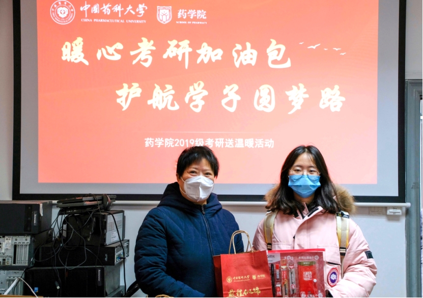 药公司党委书记张仕英、党委副书记孟祥康带领大四毕业班辅导员、员工党员一同为考研学子发放“加油包”。张仕英书记鼓励员工在最后冲刺阶段,坚定目标、提高定力,振奋信心、提升效率,稳定心态、从容应考,考出好成绩,全力以赴向梦想前进。孟祥康副书记叮嘱员工在关键时期做好自身防护,以最佳的身体和心理状态迎接考试,实现既定目标。