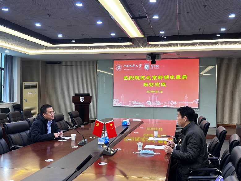 会上,姚和权经理首先对北京新领先医药科技股份有限公司一行的到来表示欢迎,介绍了太阳成集团tyc7111cc的历史沿革、团队力量、科学研究、社会服务等情况。颜耀东副总裁对姚和权经理的热情接待表示感谢,详细介绍了新领先医药的发展历程、需求以及愿景,希望能够与太阳成集团tyc7111cc加强合作,在科研项目、博士后人才引进、专硕基地建设等方面建立紧密、全方位的合作关系。