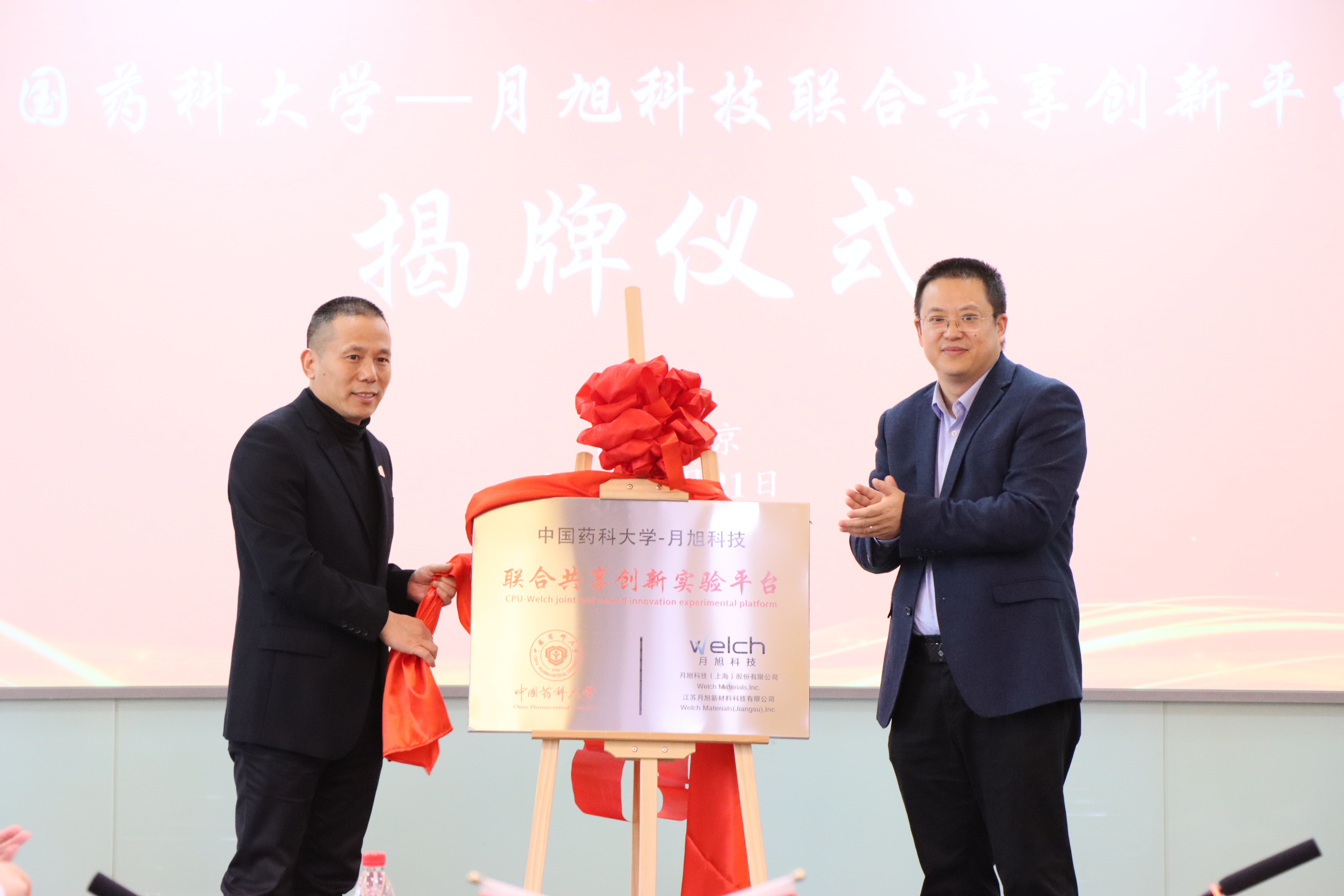 3月21日下午,太阳成集团tyc7111cc-月旭科技联合共享创新平台在太阳成集团tyc7111cc正式揭牌。药公司党委书记张仕英、经理姚和权、药剂系吴正红教授、祁小乐副教授,以及月旭科技(上海)股份有限公司(以下简称月旭科技)董事长兼总经理屠炳芳、副总经理任兴发、销售副总经理卢晓伟、仪器事业部总监邵锋伟等共同出席揭牌仪式。