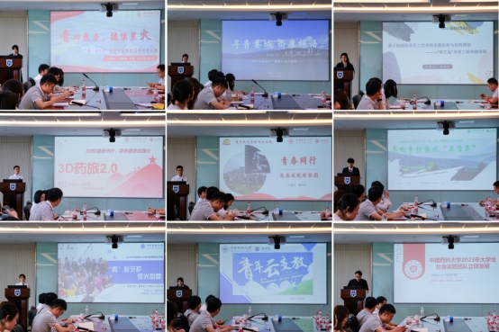 各团队答辩负责人通过PPT展示,从项目背景、实施路径以及预期成效等方面展开介绍,着重阐述了项目的实效性、可行性与特色性。各团队聚焦国家战略、最新时事与热点问题,立足不同角度,运用所学知识和技能服务人民、奉献社会,以图文并茂的方式借助汇报展现出药院学子对即将到来的暑期社会实践的坚定信心,向大家展现了药院学子与新时代同向同行、共同前进的坚定信念。期间,评委们对各团队项目的创新性、实践性以及优化方向给予针对性建议。