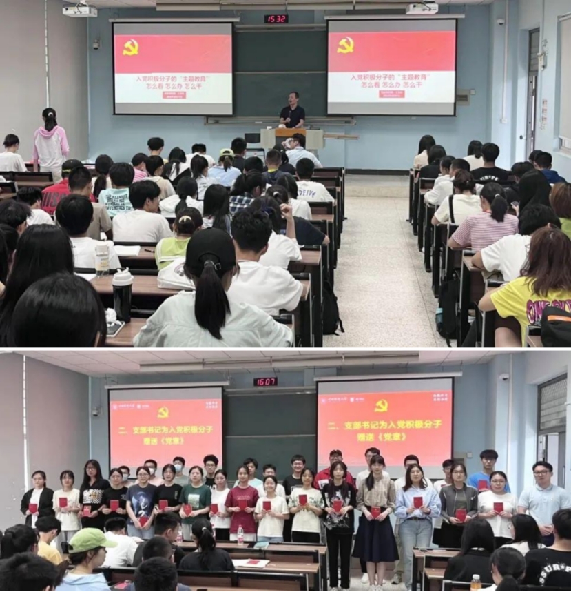此外,2022级本科生党支部支部书记还为入党积极分子赠送了《党章》。勉励各位入党积极分子要有底线意识和红线意识,时刻以党员的身份要求自己。要学而知,读原著、学原文、悟原理,学懂弄通、系统掌握、准确领会;要学而信,体会共产党人的初心使命,汲取真理力量、思想力量、实践力量,学出坚定信仰、学出使命担当,通过学习筑牢信仰之基、补足精神之钙、把稳思想之舵。