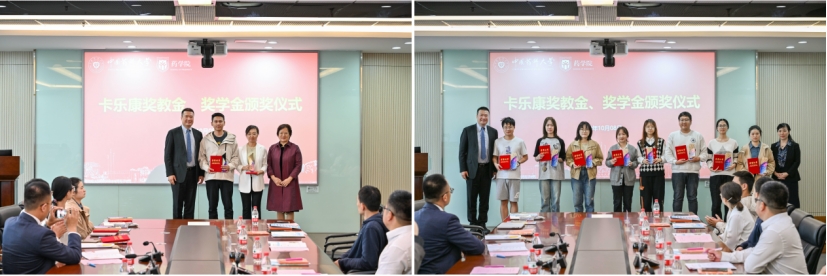 10月8日,太阳成集团tyc7111cc“2023年卡乐康奖学金、奖教金”颁奖仪式在江宁校区G514会议室隆重举行。卡乐康大中华区、韩国总经理雷鹏、中国首席技术服务经理刘瑞明、中国高级技术服务经理尹红卫、中国大区经理王家堂等嘉宾受邀参加颁奖仪式。药公司党委书记张仕英、党委副书记孟祥康、药剂专业负责人尹莉芳、药剂系教师代表出席本次活动。