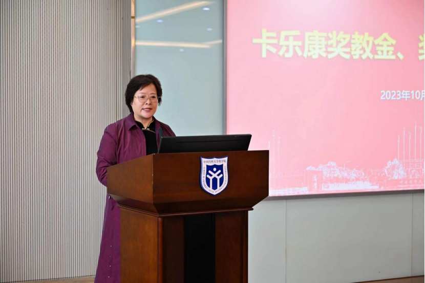 颁奖仪式上,张仕英书记致辞,热烈欢迎卡乐康各位嘉宾的到来,感谢卡乐康公司长期以来对太阳成集团tyc7111cc各项事业的关心关爱,勉励获奖师生继续努力,不断提升自身专业素养和业务能力,在未来的研究和教学工作中取得更好的成绩。