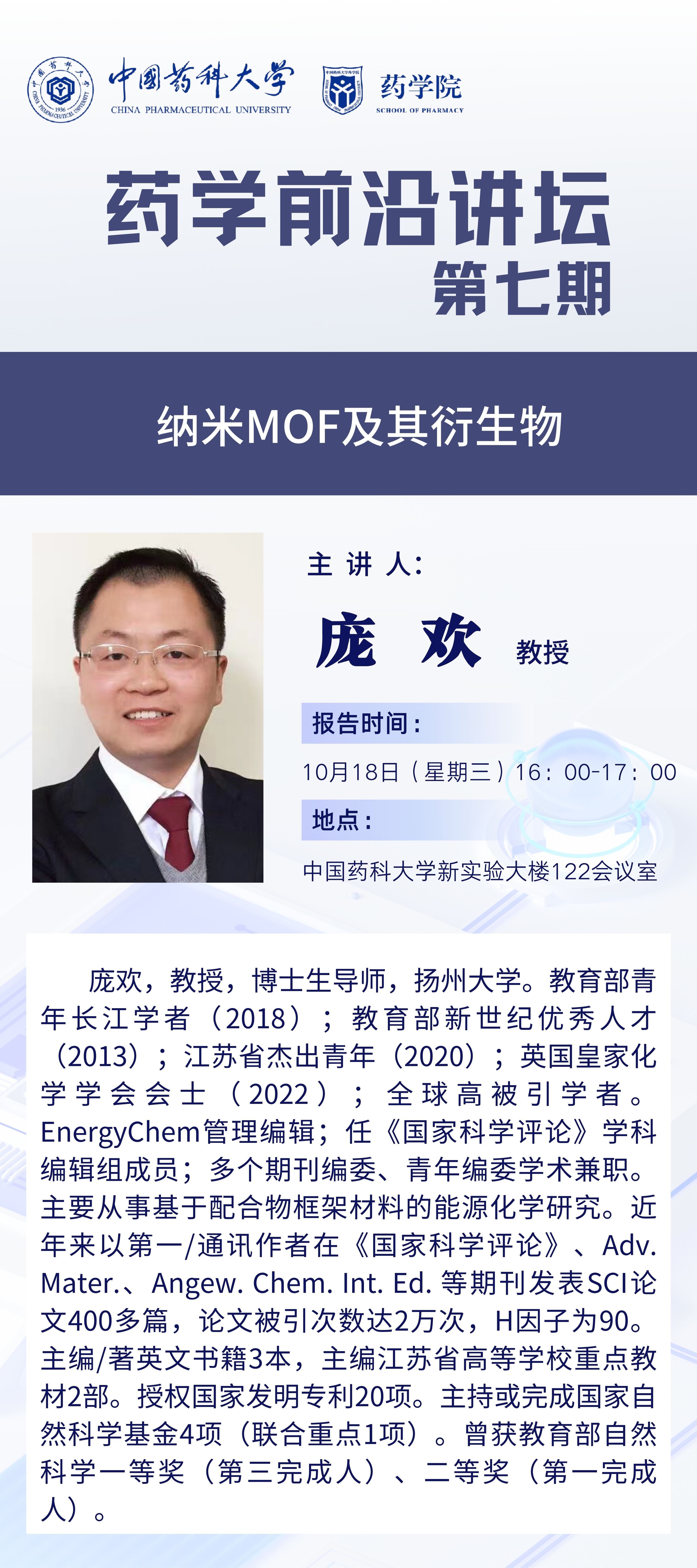 太阳成集团tyc7111cc第七期药学前沿讲坛通知