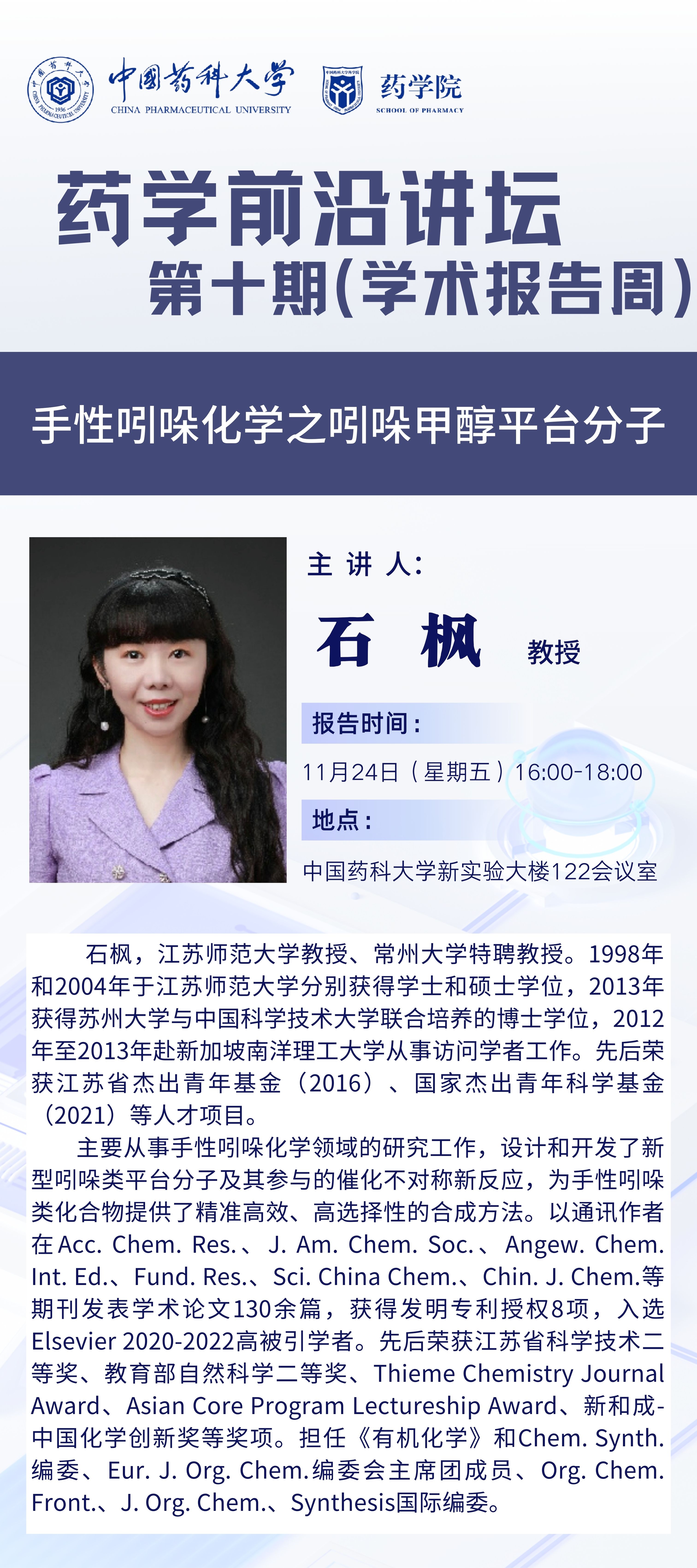 太阳成集团tyc7111cc第十期药学前沿讲坛通知(学术报告周)