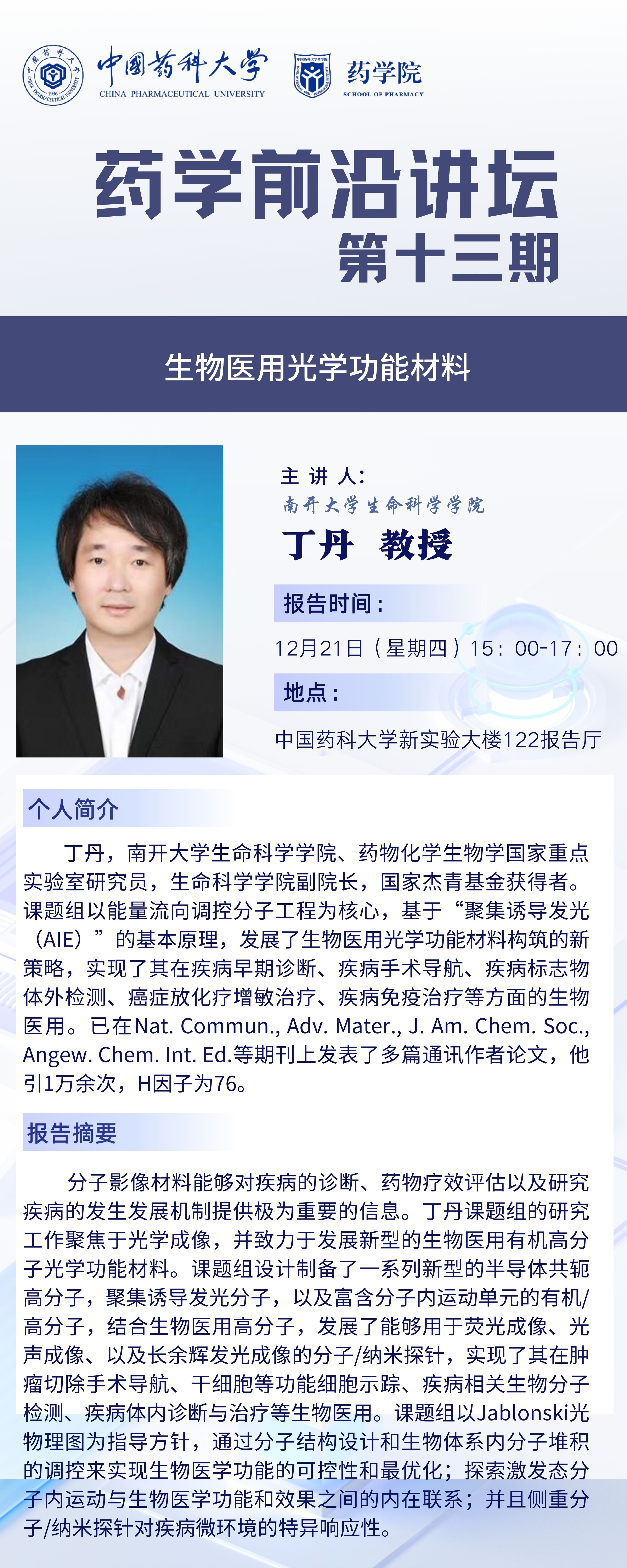 太阳成集团tyc7111cc第十三期药学前沿讲坛通知