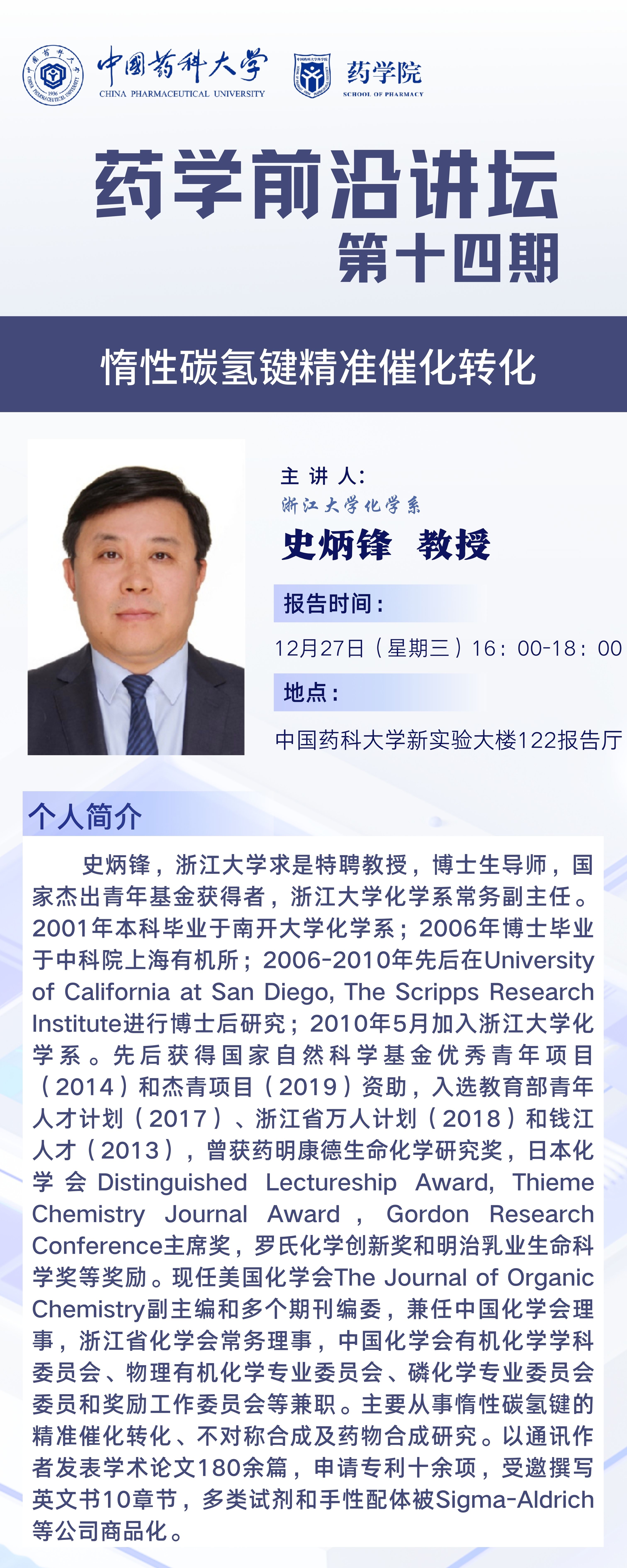 太阳成集团tyc7111cc第十四期药学前沿讲坛通知