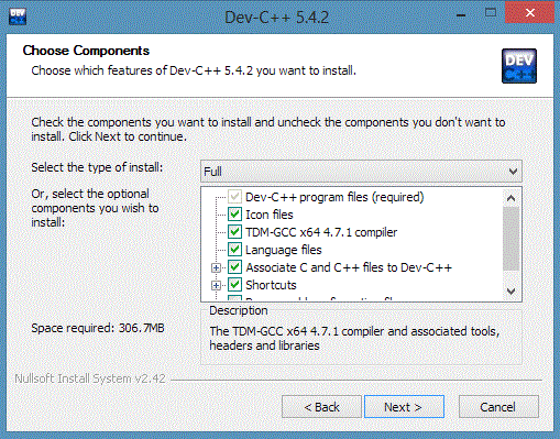 Best C Compiler - How to install Dev C/C++ : Choose component
