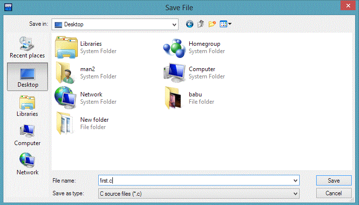 • Give a name to your file and save it as C source files.